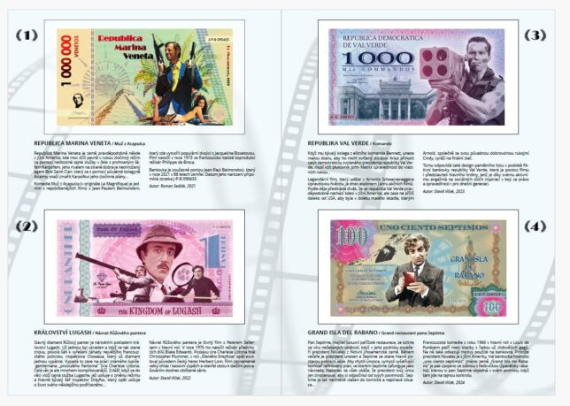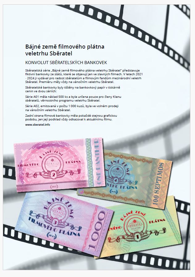 Sběratelská série “Bájné země filmového plátna veletrhu Sběratel” představuje fiktivní bankovky ze států, které se objevují jen ve slavných filmech. V letech 2021 – 2024 ji vydával pro radost sběratelům a filmovým fandům mezinárodní veletrh Sběratel. Premiéru měly vždy na vánočním veletrhu Sběratel.