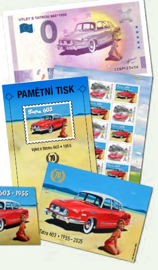 V letošním roce, slaví známý model Tatra 603 hned dvě výročí – 70 let o zahájení a 50 let ukončení výroby. Na veletrhu bude možné koupit přítiskovou známku s kuponem vydanou u České pošty i oblíbenou 0 euro suvenýrovou bankovku. Motivem je obraz „Výlet s Tatrou 603“ výtvarníka Romana Sedláka. Ten dorazí na veletrh v pátek 21. 11. v 15:00 hod. na velkou autogramiádu.
