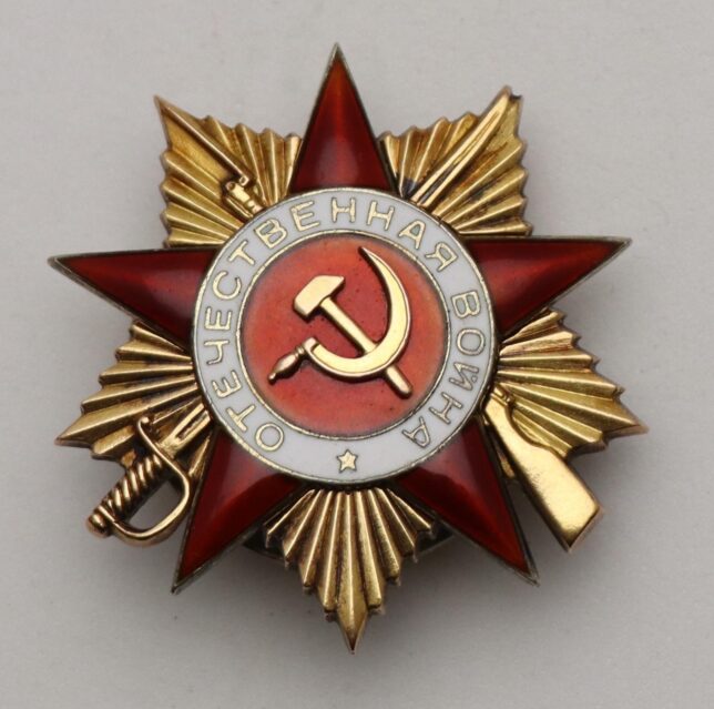 Šesté místo obsadil zlatý Řád Vlastenecké války I. třídy Sovětského svazu, který se prodal za 40 741 korun. Vyznamenání z kombinace zlata (cca 8,3 g Au 583/1000) a stříbra, ve špičkovém sbírkovém stavu, bylo součástí rozsáhlejší kolekce sovětských řádů a medailí nabízené ověřeným prodejcem Numismatika Turnov. Soubor dokumentoval vojenskou i civilní historii Sovětského svazu od druhé světové války přes poválečné období až po civilní řády práce a mateřství.