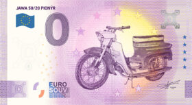 For every Sberatel fair, the organisers strive to prepare an attractive collectible souvenir available exclusively at the event. This year, collectors can look forward to a 0-Euro Souvenir Note and a Czech Post stamp sheet featuring the Jawa 50/20 Pioný motorcycle.