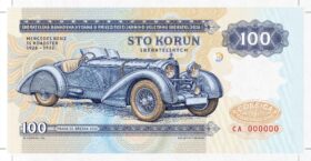 The emission of collectible notes from the “Golden Collection” of artist Václav Zapadlík, dedicated to “Legendary Coachwork,” also continues. It serves as a reminder that Václav Zapadlík was not only a phenomenal artist but also a brilliant coachwork designer; many cars that previously existed only in photographs were brought back to life based on his technical designs.
