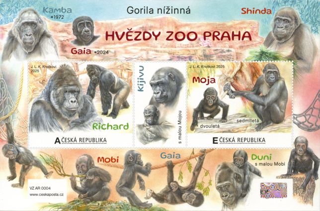Poštovní aršík vlastních známek „Hvězdy ZOO Praha“ věnovaný slavným gorilám z pražské zoo vydala Česká pošta. Novinka připomíná nejen vůdce Richarda a slavnou Moju, ale i celou fascinující historii gorilí tlupy, která se stala jedním ze symbolů moderní české zoologie.