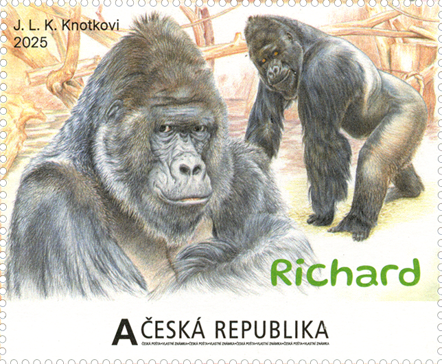 Výraznou tváří pražské gorilí skupiny se stal samec Richard, který byl přivezen z anglického Paigntonu po ničivých povodních v roce 2002. Brzy se prosadil jako respektovaný vůdce tlupy a zároveň otec několika mláďat. Právě jeho podobizna zdobí jednu z nových známek.