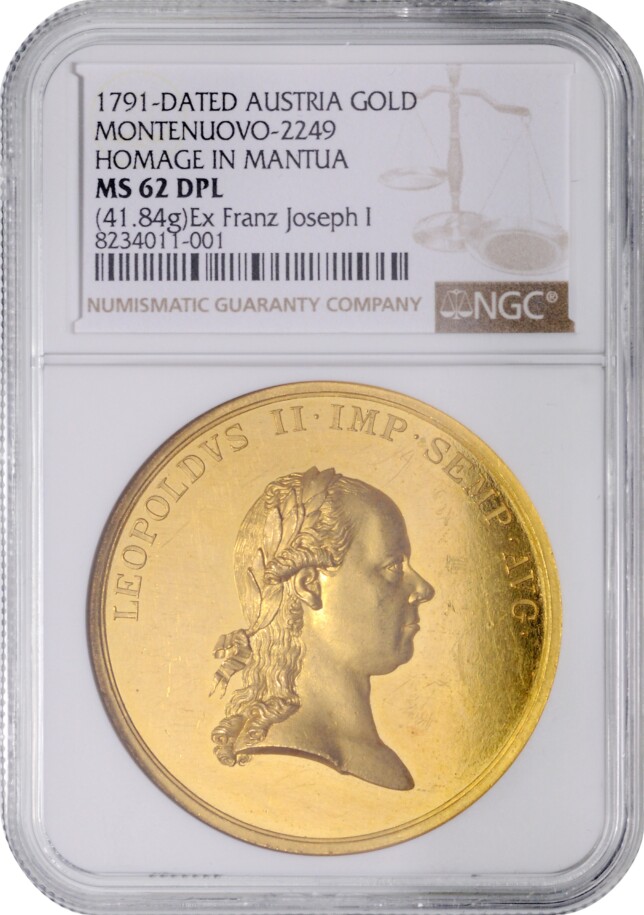 V pátek 26. září se v pražském hotelu Andaz uskuteční numismatická sálová aukce s Live Bidding aukčního domu Antium Aurum. Do dražby míří celkem 549 položek – od vzácných středověkých dukátů a tolarů až po československé mince 20. století. Medaile, 12 Dukát Leopolda II. – holdování v Mantově 1791, je podle dostupných informací jediný exemplář na trhu a pochází přímo z pozůstalosti císaře Františka Josefa I.