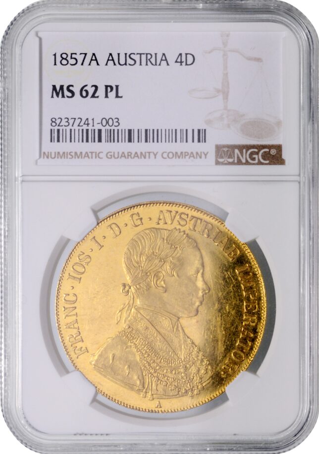 Celá řada mincí a medailí v aukci bude dražena s certifikací americké společnosti NGC. Tato společnost je největší světovou společností poskytující nezávislé ohodnocení mincí a medailí, která dosud vystavila certifikáty k více než 60 milionům předmětů z celého světa.