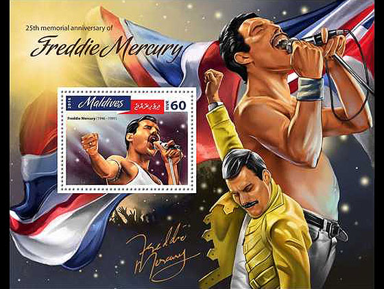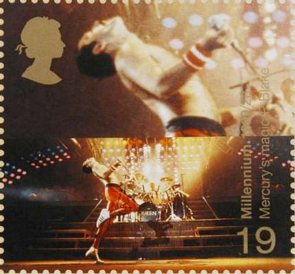 Freddie Mercury se objevil na poštovních známkách řady států. Největší rozruch způsobila ta vydaná britskou Královskou poštou. Vedle slavného zpěváka, který byl tehdy již po smrti, totiž zachycuje také bubeníka Rogera Taylora. Právo zobrazovat žijící osoby na poštovních známkách je ale vyhrazeno pouze členům královské rodiny.
