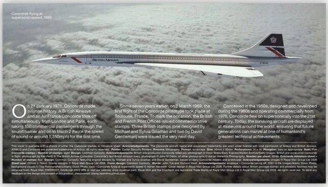 Obálka obsahuje kartu s informacemi o letadle Concorde.