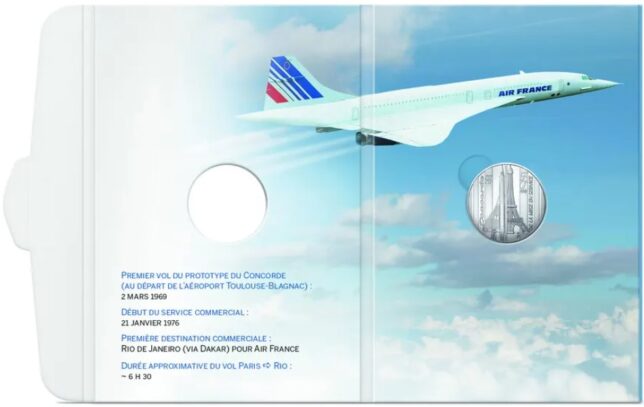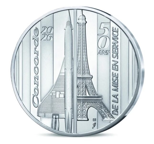 Pařížská mincovna vydává v roce 2026 sběratelskou minci k 50. výročí zahájení provozu nadzvukového letounu Concorde, navrženou ve spolupráci s kreslířem Romainem Hugaultem. Design mince originálně propojuje siluetu Concordu s Eiffelovou věží, přičemž připomíná jak technologický triumf, tak komerční ukončení provozu v roce 2003.