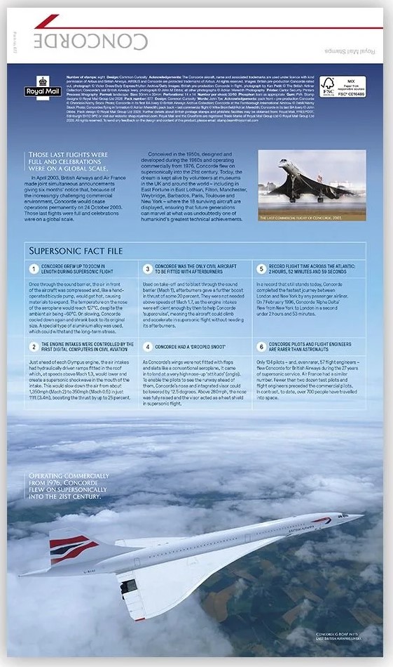 Obálka obsahuje kartu s informacemi o letadle Concorde.
