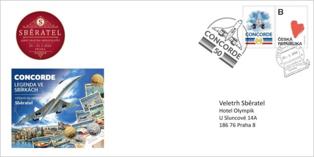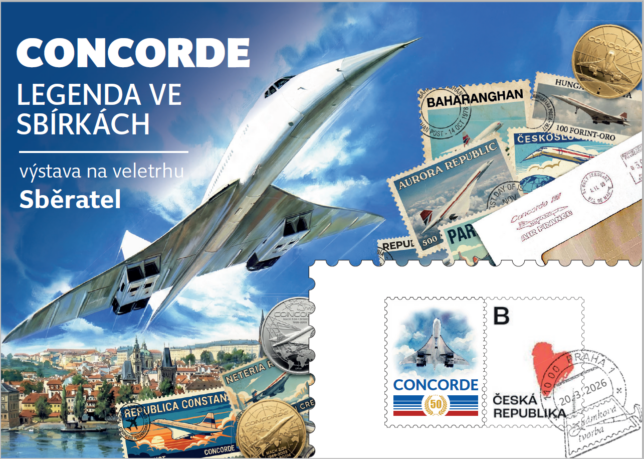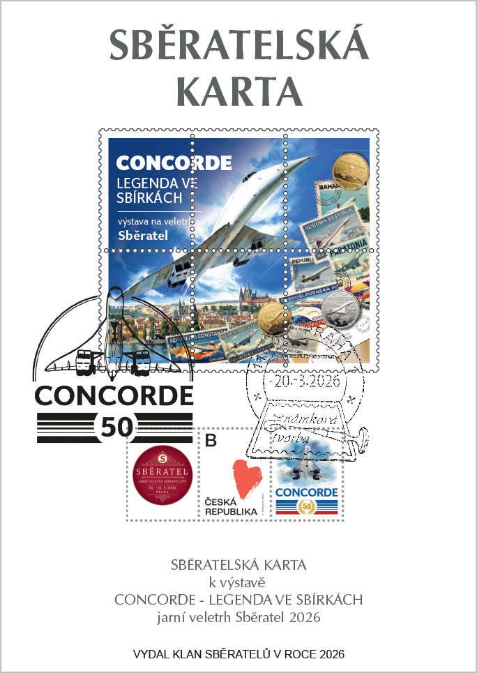 Sběratelská karta určená pouze pro členy Klanu sběratelů se dvěma kupony České pošty, přítiskovou poštovní známkou a předtištěným kuponem s letadle Concorde. Poštovní známka je oražena razítkem známkové tvorby s datem 20. 3. 2026, tedy první den veletrhu.