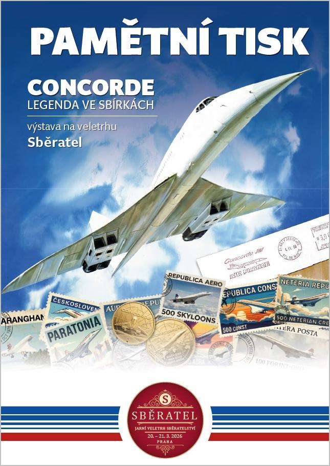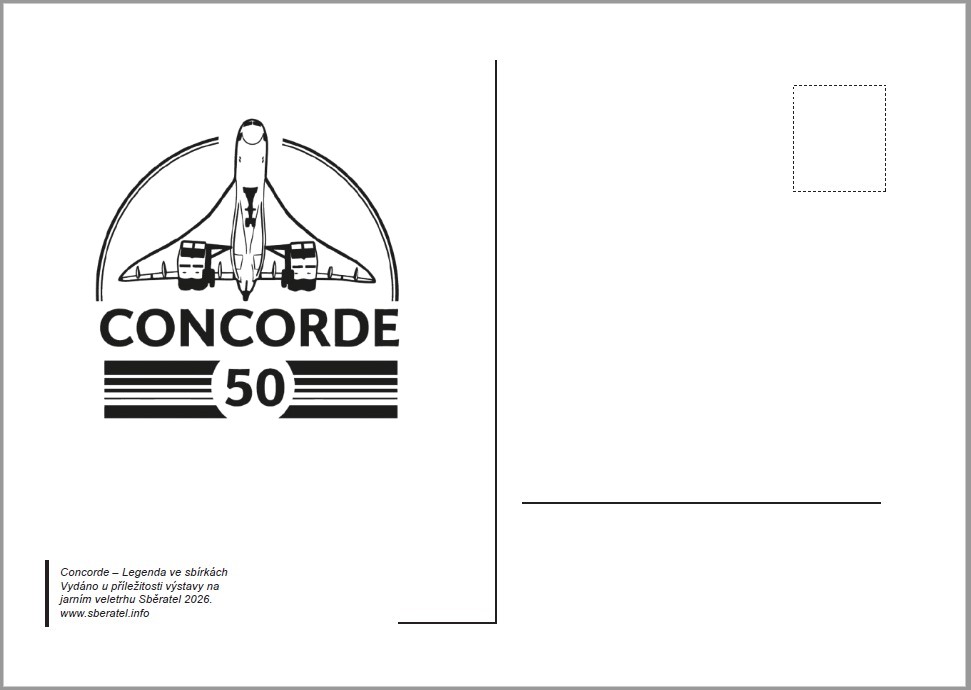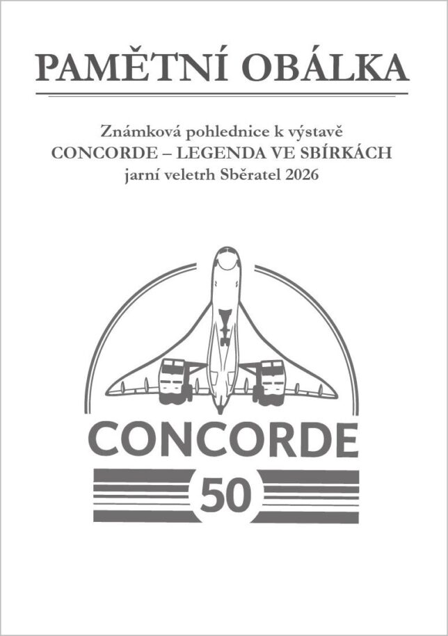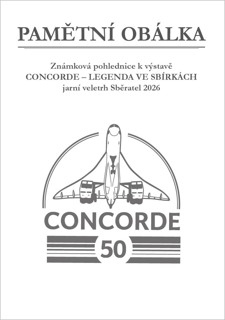 Pamětní tisk k 50. výročí prvního komerčního letu Concorde s logem jarního veletrhu Sběratel a motivem přítiskového kuponu, který měl na veletrhu premiéru. Formát A5.