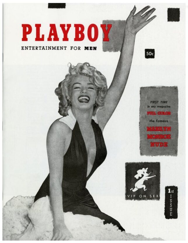 “Buď mi přidáte pět dolarů, nebo nikam nejdu,” reagoval tehdy muž, který živil manželku a svou malou dcerku. Protože mu nepřidali, zrodil se nový časopis – Playboy. Původně se ale měl jmenovat Stag party (Pánská jízda), název Hefner změnil až na poslední chvíli v kuchyni svého bytu, kde první číslo na koleně dělal. Jeho tahákem byly nahé snímky tehdy nepříliš známé blonďaté herečky Marilyn Monroeové, kterou k focení za pár set dolarů přemluvil Hefnerův známý fotograf. Na titulní stránce pak nad hlavou této budoucí “sexbomby století” chybělo i číslo vydání.