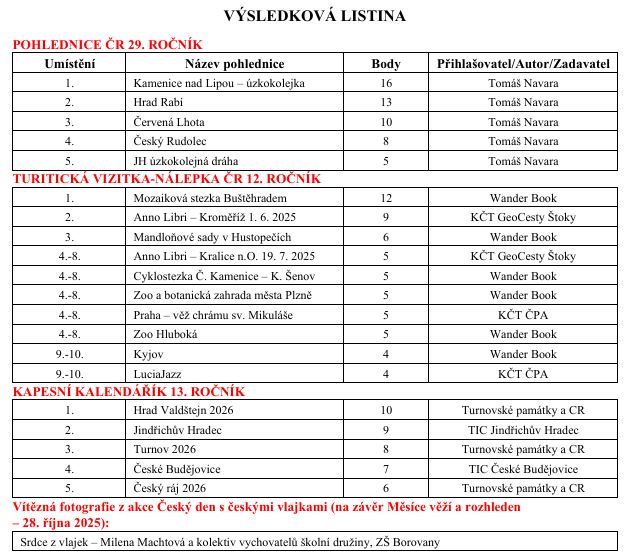 Z hlasování vzešla jako vítězná pohlednice „Kamenice nad Lipou – úzkokolejka“ s půvabnou fotografií Tomáše Navary, druhé místo obsadila pohlednice „Hrad Rabí“ a třetí Červená Lhota.