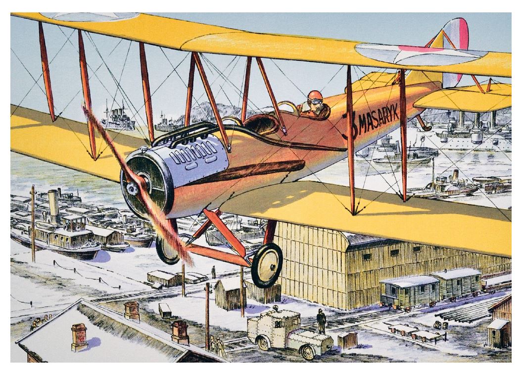 „Přelet letounu Tractor nad vladivostockým přístavem.“ Čechoslovákům se v ruských legiích podařilo zformovat také leteckou jednotku, která využívala různé modely a typy letadel. Čtyři stroje Tractor vyrobené v USA doputovaly s legiemi do vlasti. Jeden z nich se zachoval a je zavěšen v dopravní hale Národního technického muzea od roku 1950.